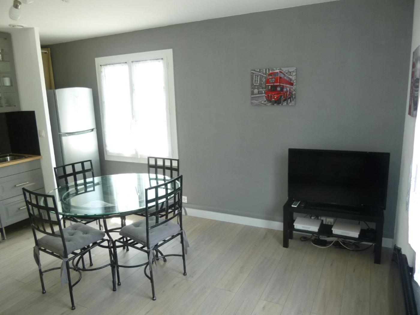 Appartement - Vue sur Jardin. The apartment features a private bathroom, a washing machine, a private entrance, as well as a seating area with a flat-screen TV. In the fully equipped kitchen, guests will find a stovetop, a refrigerator, a dishwasher and kitchenware. The apartment offers a coffee machine, a wardrobe, a sofa, a TV, as well as garden views. The unit offers 2 beds. ;