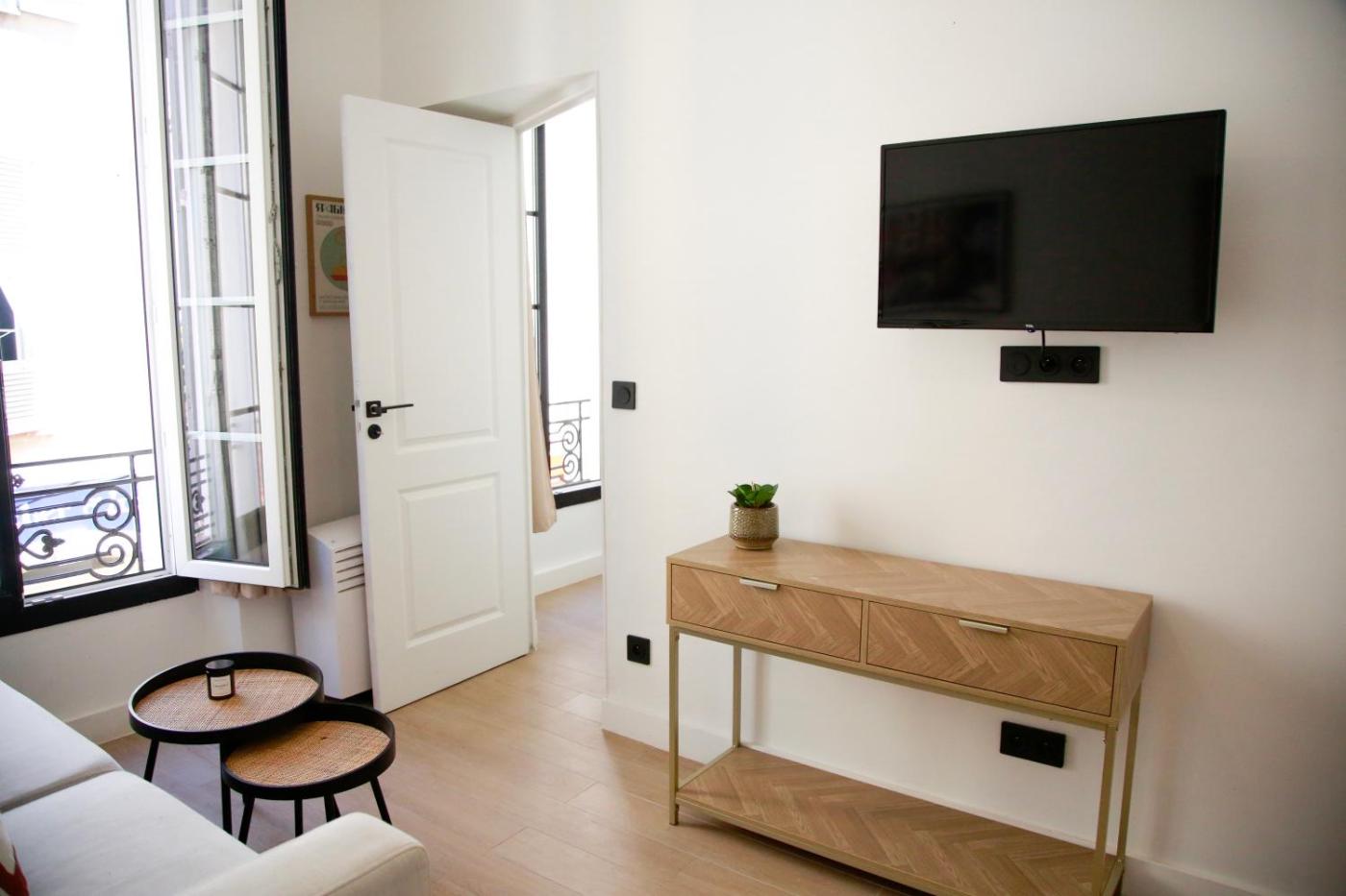 Appartement 1 Chambre. This air-conditioned apartment is comprised of 1 living room, 1 separate bedroom and 1 bathroom with a shower. The apartments kitchenette, which features a refrigerator, is available for cooking and storing food. The apartment offers a flat-screen TV, a washing machine, a coffee machine, a dressing room as well as a quiet street view. The unit offers 1 bed.