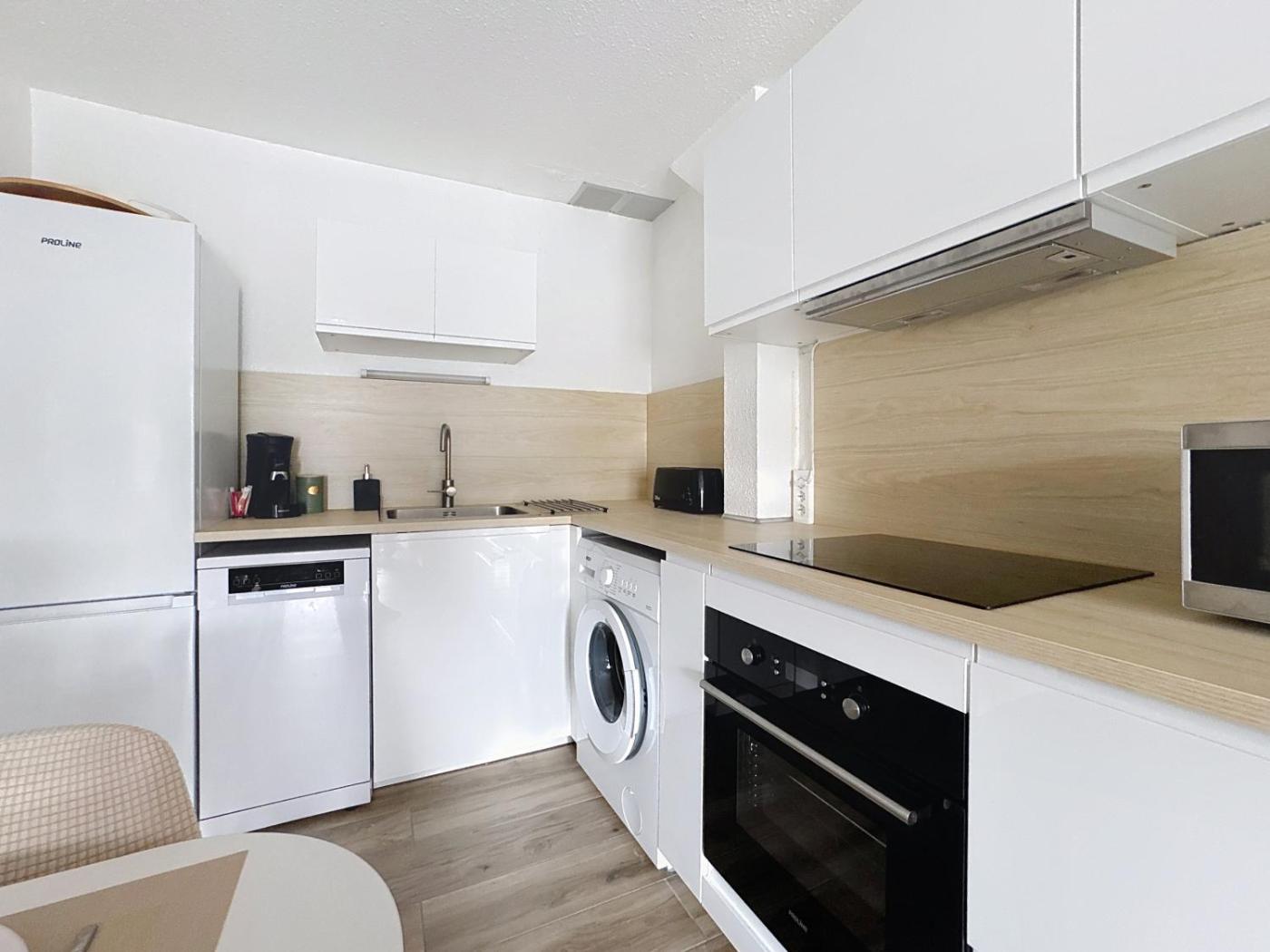 Appartement 2 Chambres. This air-conditioned apartment comes with 1 living room, 2 separate bedrooms and 1 bathroom with a shower. Guests will find a stovetop, a refrigerator, a dishwasher and kitchenware in the well-equipped kitchen. The apartment also includes a barbecue. Boasting a terrace with garden views, this apartment also features a washing machine and a flat-screen TV. The unit has 3 beds.