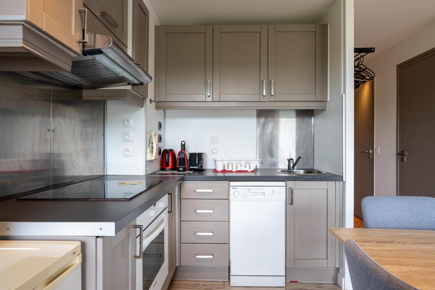 Studio. Guests can make meals in the kitchen that features a refrigerator, a dishwasher, kitchenware and an oven. The studio features a tea and coffee maker, a sofa, a balcony with mountain views as well as a private bathroom boasting a bath. The unit has 1 bed.