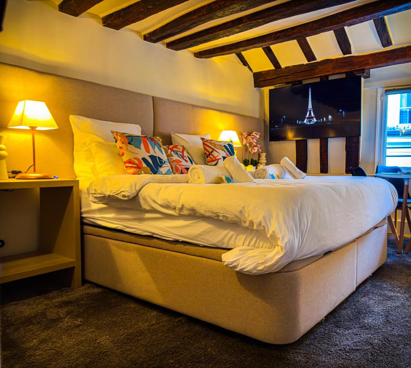 L’hébergement Marais-Pletzl, rue des Rosiers se situe dans le centre de Paris, à respectivement 1,1 km et 1,3 km de ces lieux d’intérêt : Cathédrale Notre-Dame de Paris et Sainte-Chapelle. Il possède une connexion Wi-Fi gratuite et offre une vue sur la ville. Occupant un bâtiment datant de 1325, cet appartement est à respectivement 2,4 km et 2,4 km de : Gare de Lyon et Jardin du Luxembourg.