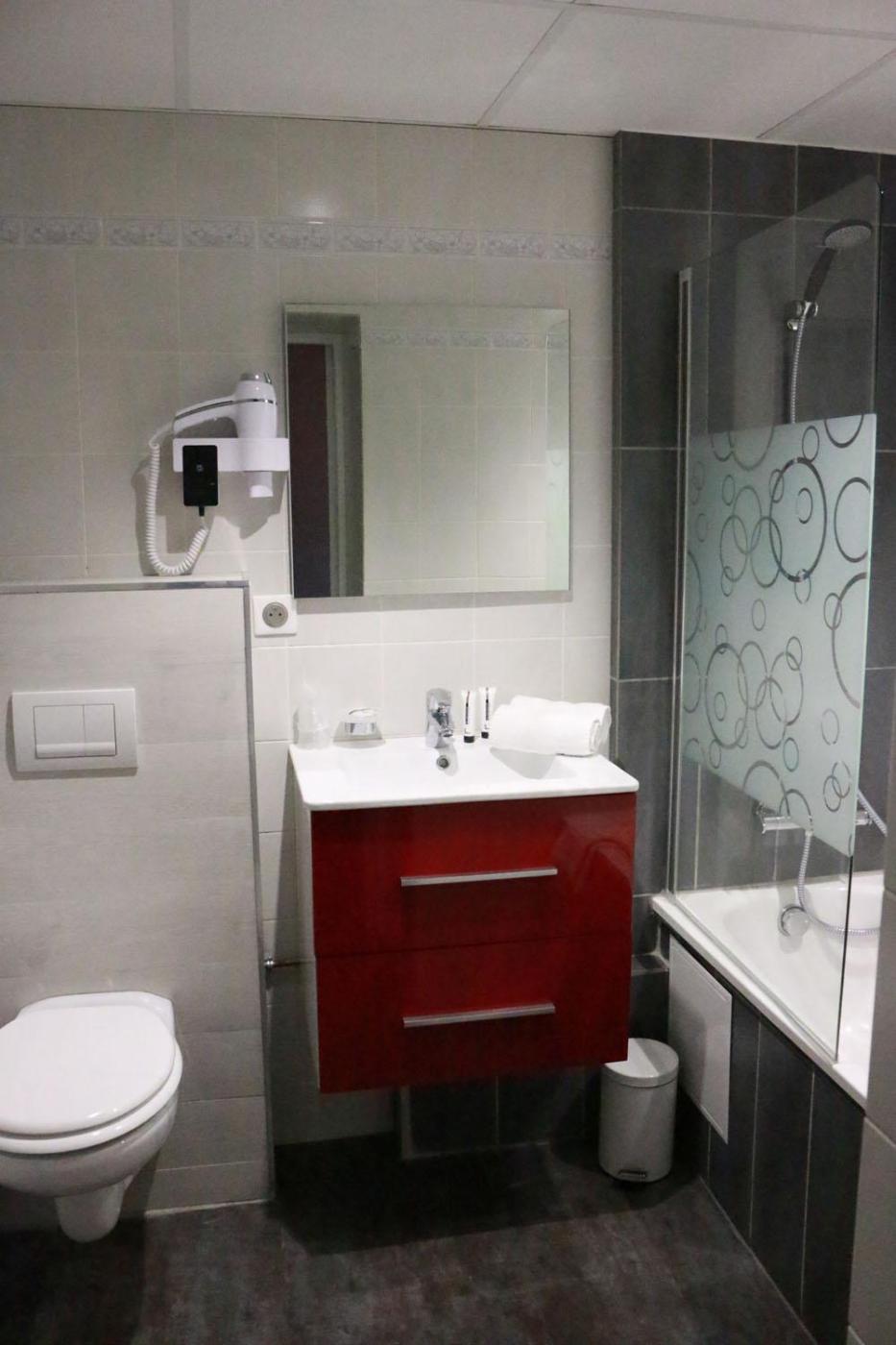 Chambre Double. The double room offers soundproof walls, a wardrobe, as well as a private bathroom featuring a bath or a shower and a hairdryer. This double room features a carpeted floor, heating, a flat-screen TV and city views. The unit offers 2 beds. ;