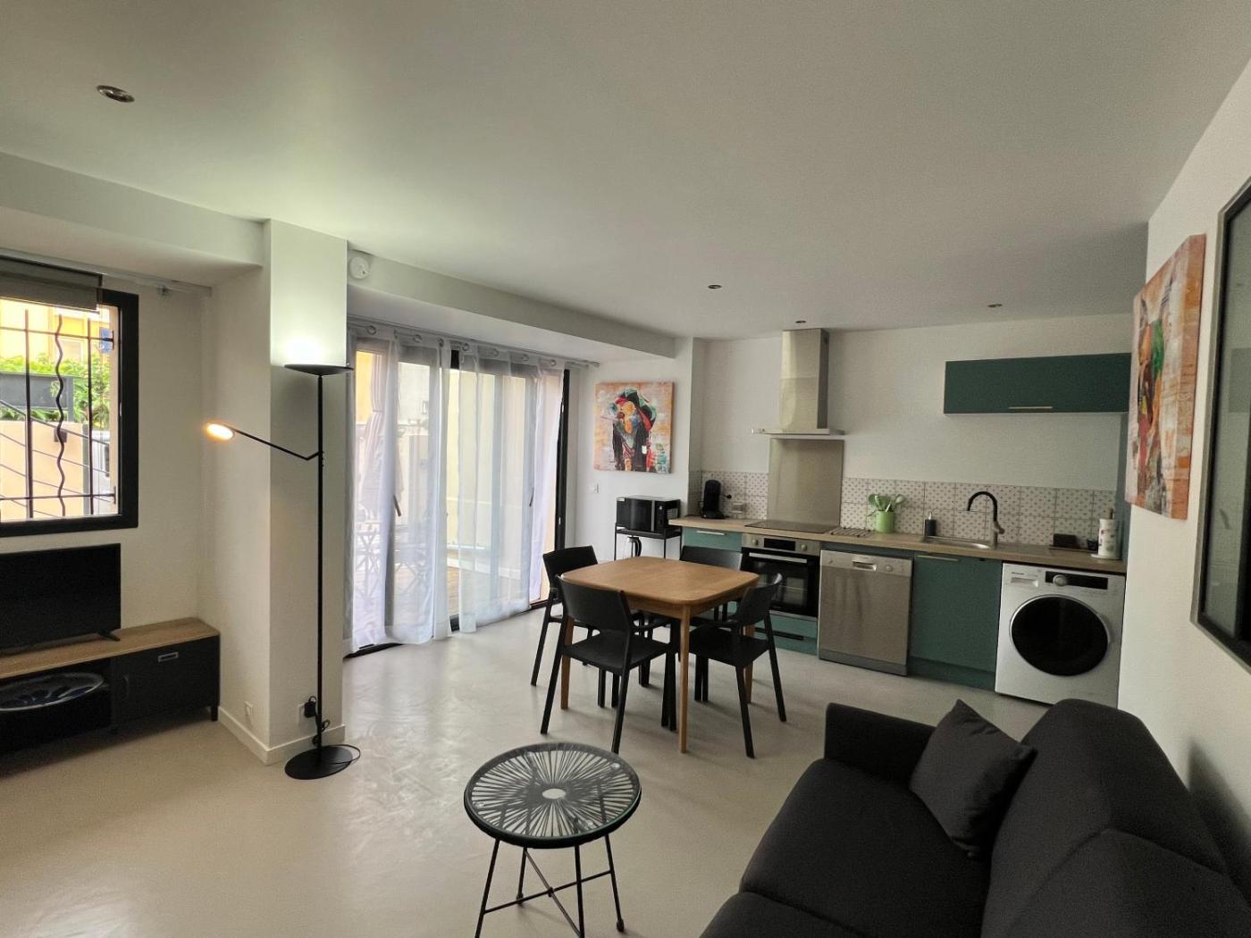 Appartement 1 Chambre. Boasting a private entrance, this air-conditioned apartment comes with 1 living room, 1 separate bedroom and 1 bathroom with a shower and a hairdryer. Guests will find a stovetop, a refrigerator, a dishwasher and kitchenware in the fully equipped kitchen. The apartment also includes a barbecue. Featuring a terrace, this apartment also features a washing machine, soundproof walls and a flat-screen TV with cable channels. The unit has 2 beds.